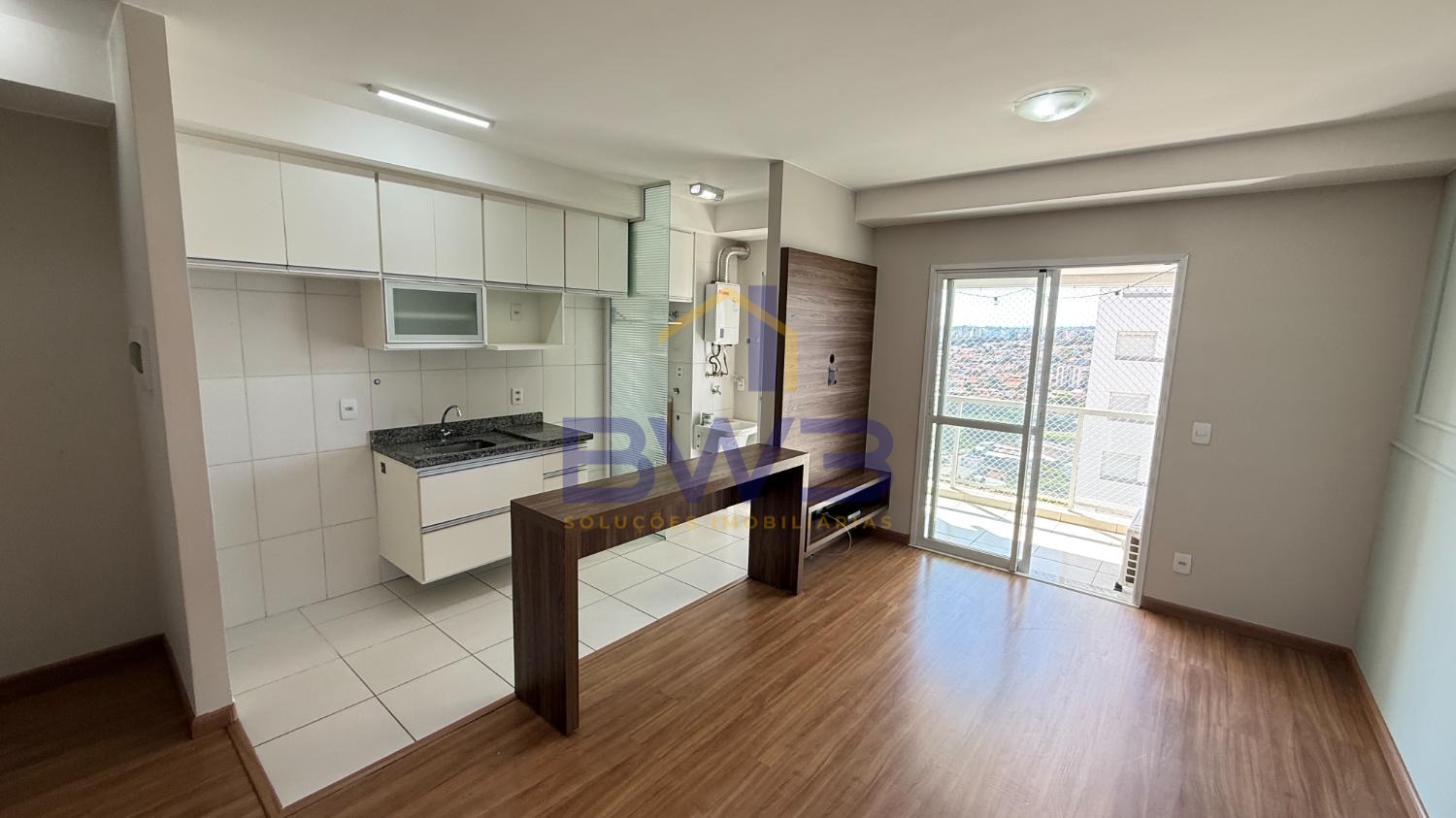 Apartamento para alugar 2 quartos sendo uma suíte, bairro Taquaral, Campinas-SP. Condomínio Vista 26, varanda gourmet, armários planejados na cozinha, piso laminado, cozinha americana, andar alto com linda vista para o Cambuí.